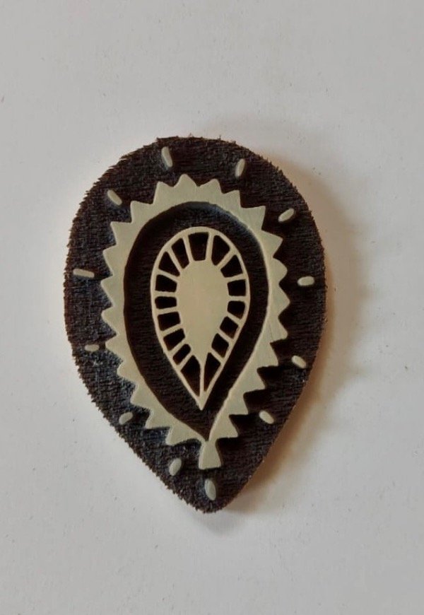 Ideal para estampar sobre textiles y crear ritmos, guardas o estampas sueltas con impronta artesanal.