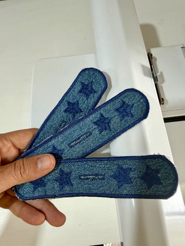 Los apliques se colocan a través de un ojal y cuentan con ganchos prendedores en la parte trasera, lo que permite aplicarlos de forma práctica sin modificar la prenda de manera permanente.